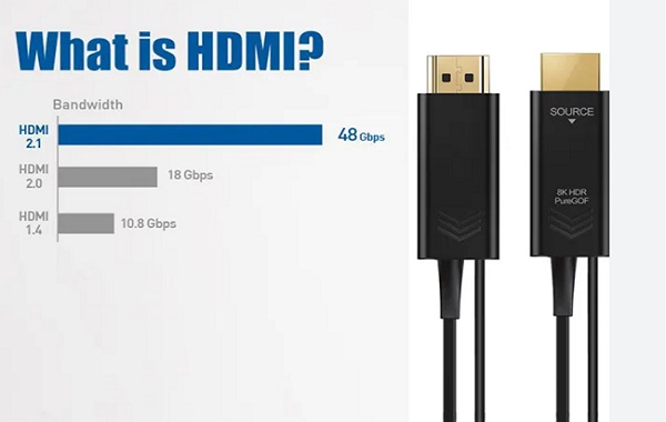 HDMI 2.1 支持 48Gbps 带宽,可实现 8K@60Hz、4K@120Hz